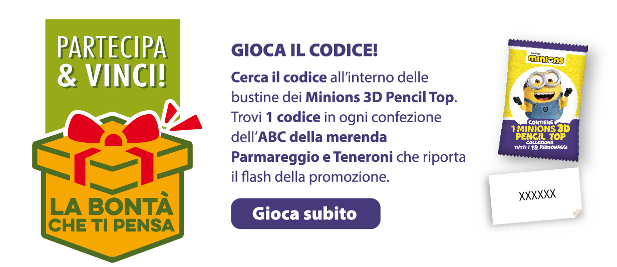 Operazione a premi «Minions 3D Pencil Top» valida dal 25/08/2025 al 30/11/2025. Leggi il Regolamento completo.